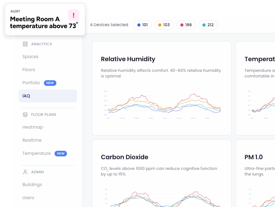Every metric that affects your indoor environment — continuously analyzed by AI to optimize conditions, detect issues, and create more productive spaces.